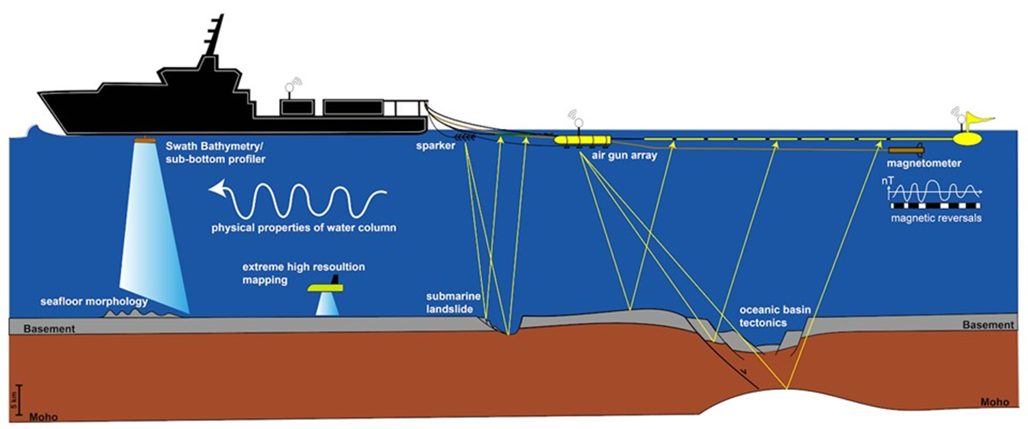 - 調查與探勘台灣東部海域,包括:海洋物理特性長期觀測、海底地形、地質與地震調查