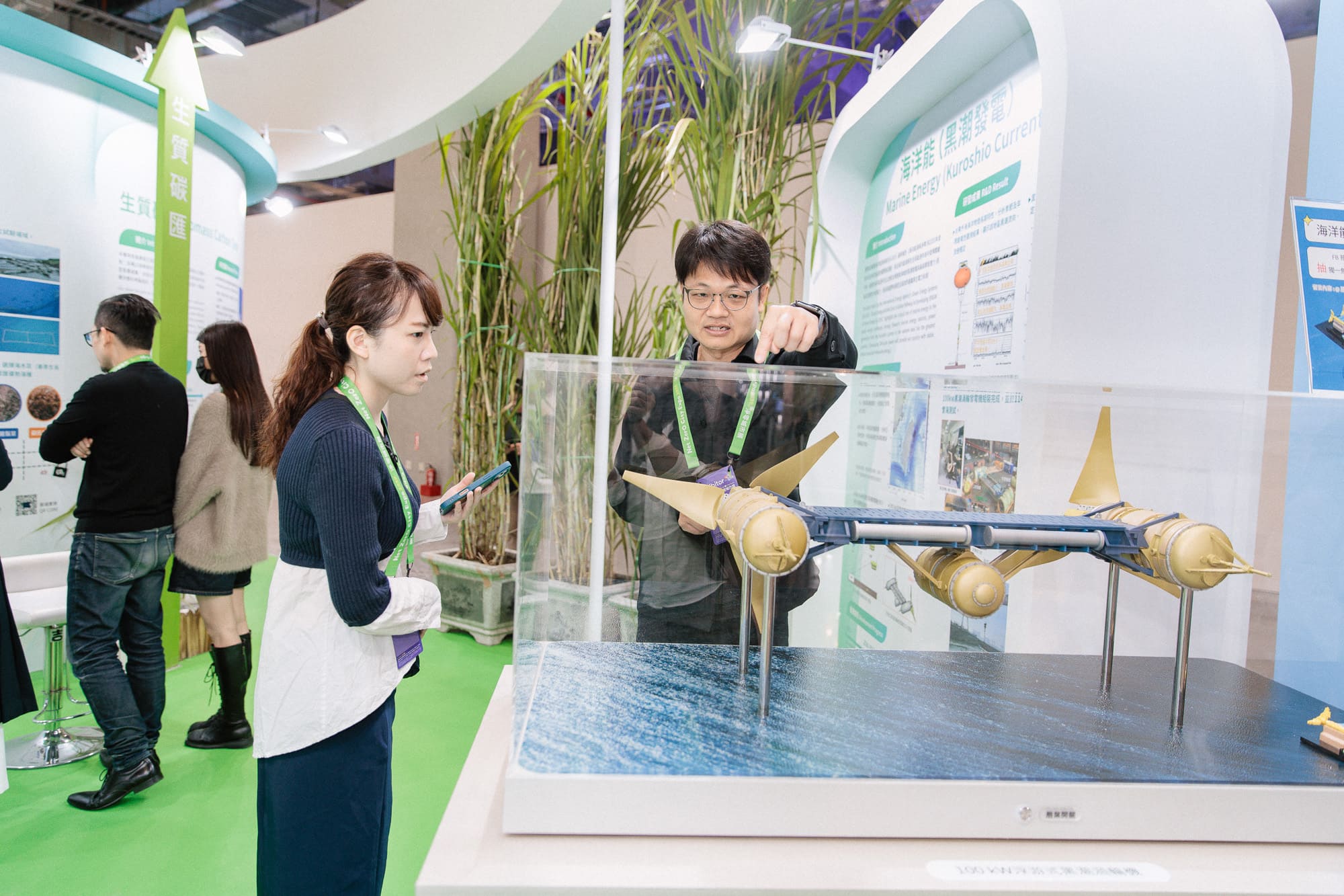 本院展出「淨零五支箭」包括去碳燃氫、高效太陽光電、海洋能、地熱能及生質碳匯並透過展品、模型、影片及互動遊戲,向大眾呈現本院於淨零科技領域的研發進展與投入。